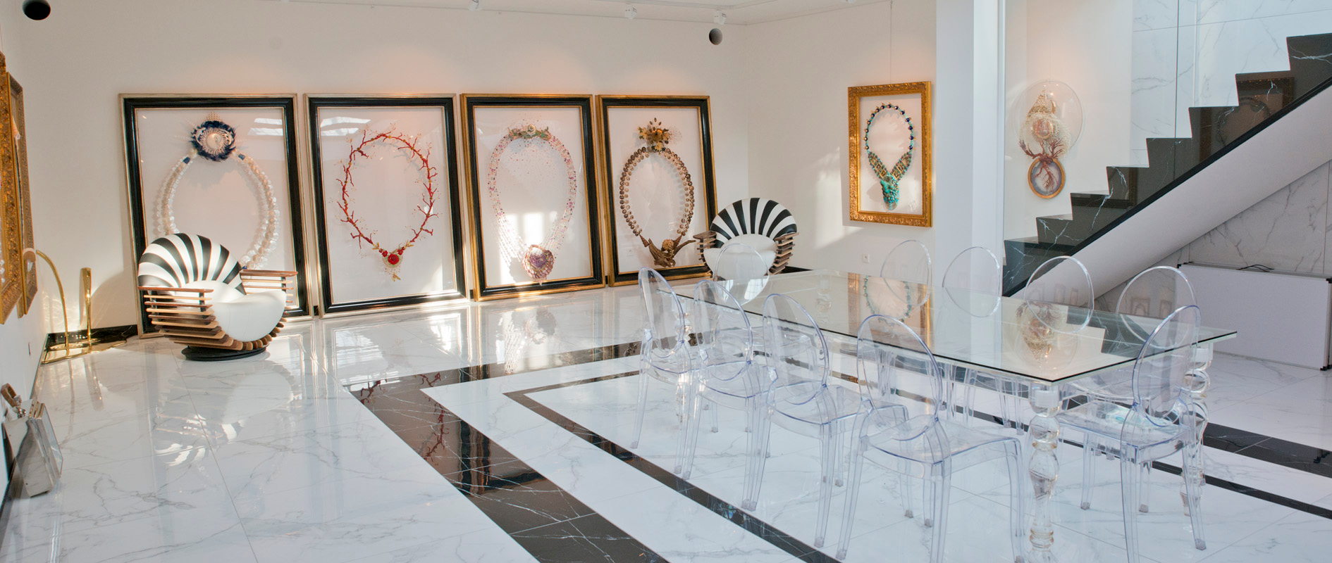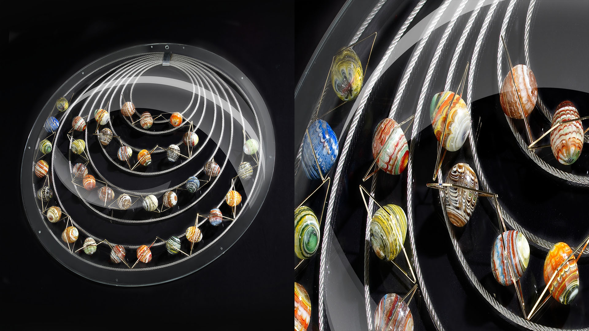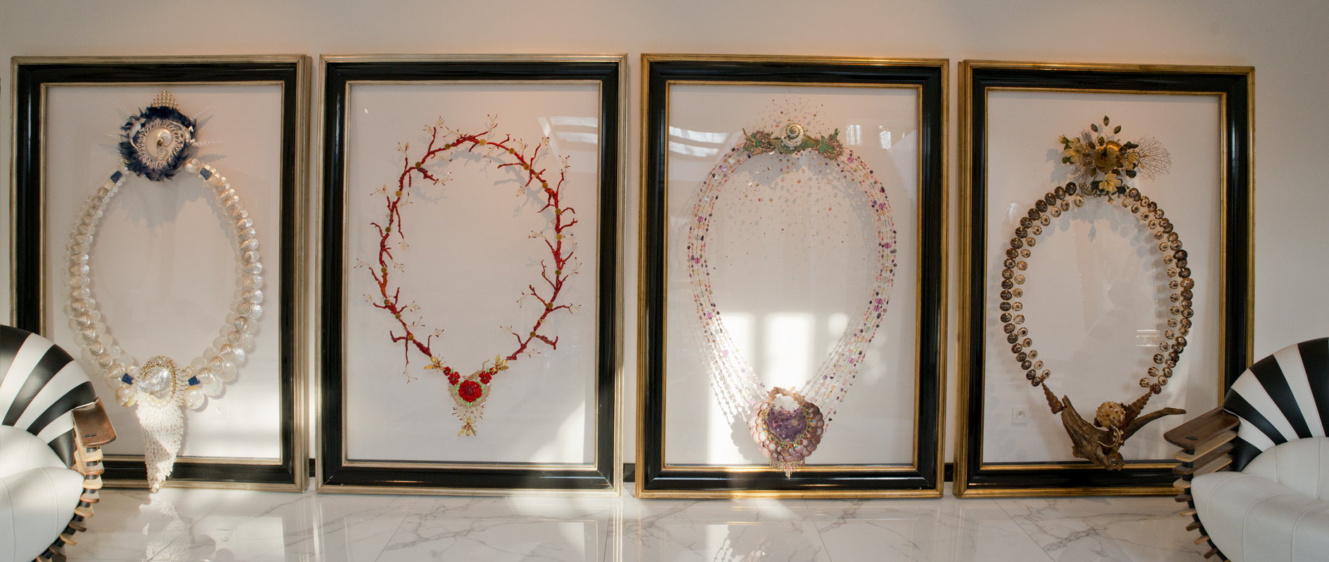 Het ontwerpen van elke creatie zowel in 2D als 3D is telkens weer een huzarenstuk. Elk object hoe klein ook moet qua vorm, kleur en materiaal perfect zijn en als compositie volledig in balans zijn. Het is een proces van dagen of zelfs weken voor ik helemaal tevreden ben over een compositie. Pas daarna wordt elk onderdeel van de compositie uiterst nauwkeurig één voor één op transparant perspex gemonteerd. Het luistert heel nauw want elk krasje hoe minuscuul ook is te zien en moet worden weg gepolijst. Tot slot wordt het geheel in een bijpassend kader bevestigd.